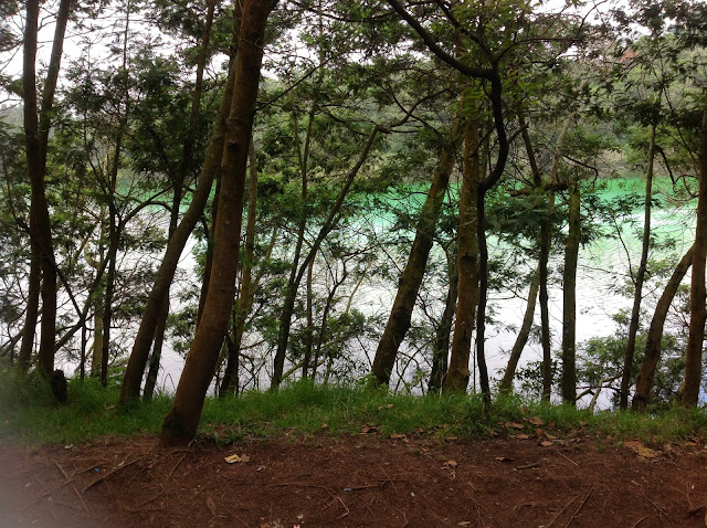 Setelah check in, kami makan mie ongklok di sebuah warung sederhana di dekat pertigaan. Enak sekali mie ongklok dan gorengan khas dieng. Setelah itu, kami pergi ke Telaga Warna dengan berjalan kaki. Kami ditawari ojeg berkali - kali oleh seorang bapak - bapak, tapi kami menolaknya. Walaupun kami sudah dua kali menolaknya, bapak itu malah berbaik hati ngasih tau kami gimana caranya masuk telaga warna secara gratis. Sebelum kami masuk telaga warna, kami mencoba ingin naik bukit di samping telaga warna agar dapat melihat telaga warna dari atas. Namun, kami mengurungkan niat kami setelah bertemu seorang bapak - bapak yang melarang kami naik, karena kami hanya berdua, takut hilang katanya. Akhirnya, kami pun masuk ke Telaga Warna dan berfoto - foto di sana. Berikut ini fotonya!!